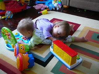Hailey absolutely LOVES matching Brooklyn and the girls had fun playing on Hailey's bed! They're actually playing TOGETHER! Nevermind that Brooklyn keeps opening the drawbridge on Brennan's head :)